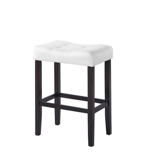 Grab a comfortable seat at the bar on this upholstered bar stool. With an espresso leg finish, this stool is upholstered in a white fabric with tufted seating. This sturdy stool will easily match most bar décor.