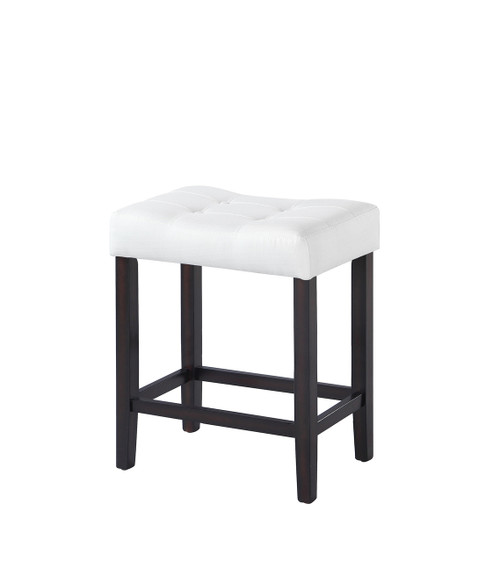 Grab a comfortable seat at the kitchen counter on this upholstered counter-height stool. With an espresso leg finish, this stool is upholstered in a white fabric with tufted seating. This sturdy stool will easily match most kitchen décor.