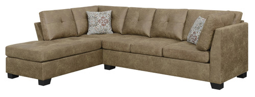 With its simple lines and lush brown microfiber upholstery, the Darie Casual Golden Brown Sectional offers transitional style to complement any home. Tufted back cushions offer a classic, refined look and are fully removable for easy cleaning and maintenance. Two accent pillows offer additional style and comfort to your room. Pair with the versatile Darie Casual Golden Brown Ottoman to complete the look.