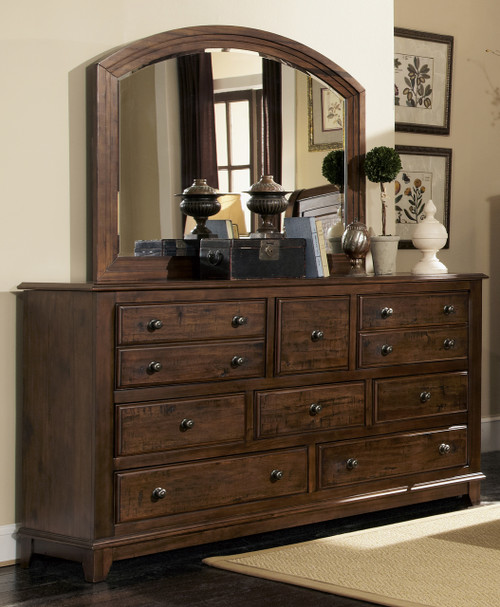 Modern country style never looked so good as in this Laughton Rustic Dresser Mirror. The rounded edge of this mirror lends a unique shape to your typical dresser mirror. With a frame made from solid wood, lightly distressed by hand, this mirror can work in a spectrum of room designs, from rustic country to contemporary.