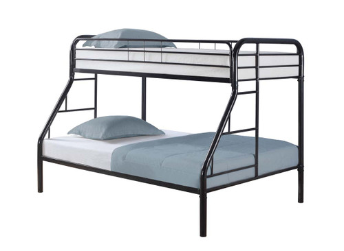 Free up usable floor space in a guest room or shared bedroom with this casual combination twin and full-size bunk bed. The top bunk is accessible by ladders on both ends of the frame, protected by safety railing for extra peace of mind. The adaptable black finish ensures this piece will fit with any interior décor style.