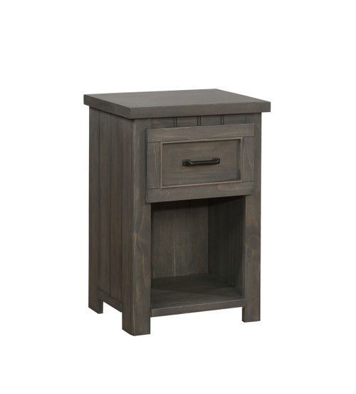 The Napoleon Collection combines beautiful finishes and design elements with a masculine touch. Perfect for a boy's room yet will also stick around as your child grows. The gun-smoke finish is unique yet neutral to allow it to blend with almost any existing furniture and decor. Smooth drawer fronts with dark metal drawer pulls sit over a frame that is made of slatted panels. The result is an interesting design that is strong and rugged. This nightstand provides one drawer and one open shelf.