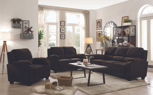 This three-piece set from the Northend Collection will make a comfortable and stylish addition to your home. With a kiln-dried hardwood frame, this sofa and loveseat set is upholstered in a chocolate chevron velvet fabric with plush padding and pocket-coil seating. The small-scale design of this two-piece set is great for those tight on space.